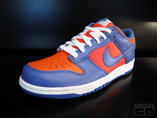 The latest Nike Dunk Low comes at you with a palette resembling two Nike SB legends.  Two kicks that pretty much everybody can agree are hot were 2002’s Danny Supa-designed orange and blues, followed the next year by a reversed ‘Denver Broncos’ look.  This new pair takes up the whole shoe instead of leaving a white underlay, which means it’s pretty much half and half.  Grab a vintage UVA or Syracuse jersey and hit up Extra Butter.